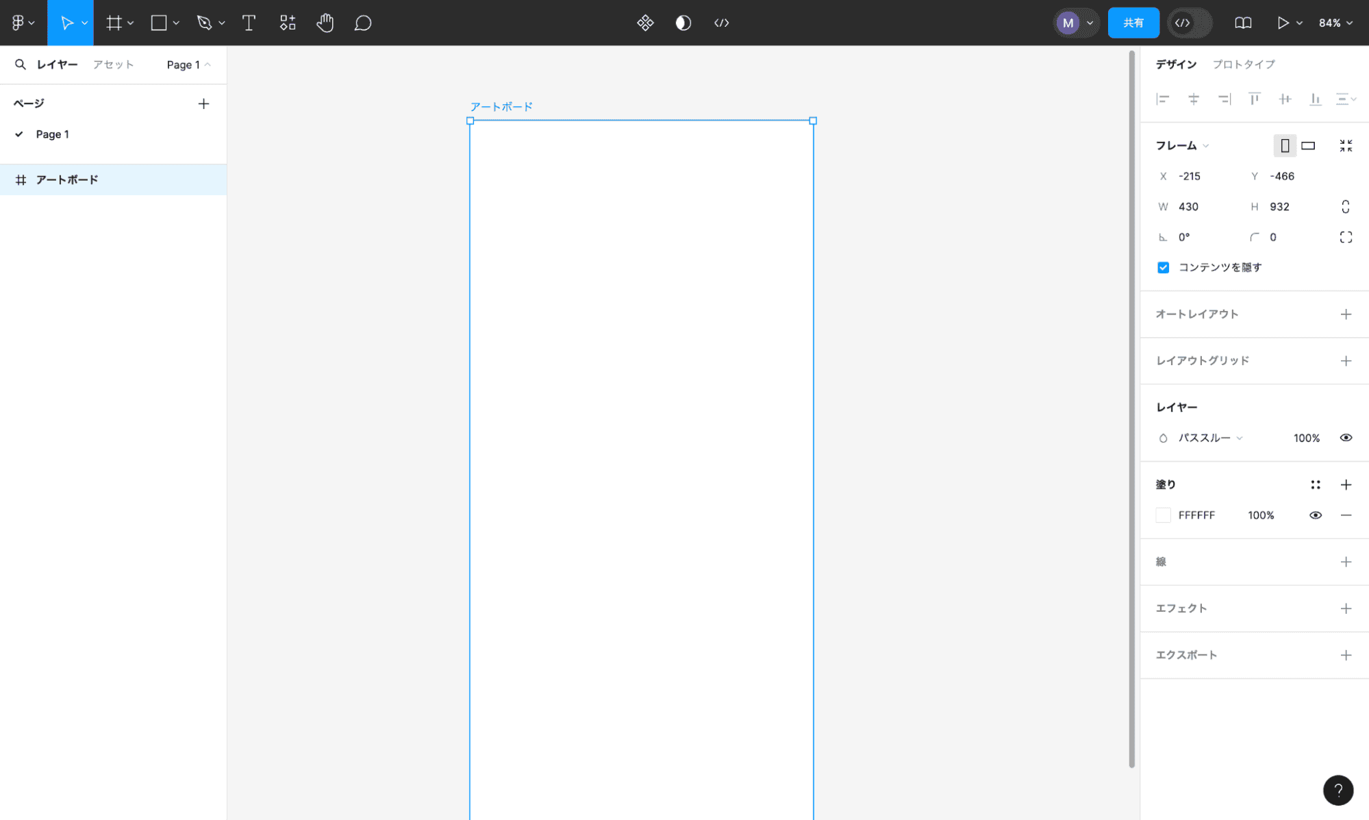 まず、「ツールバー」の「#」からアートボードを作成します。