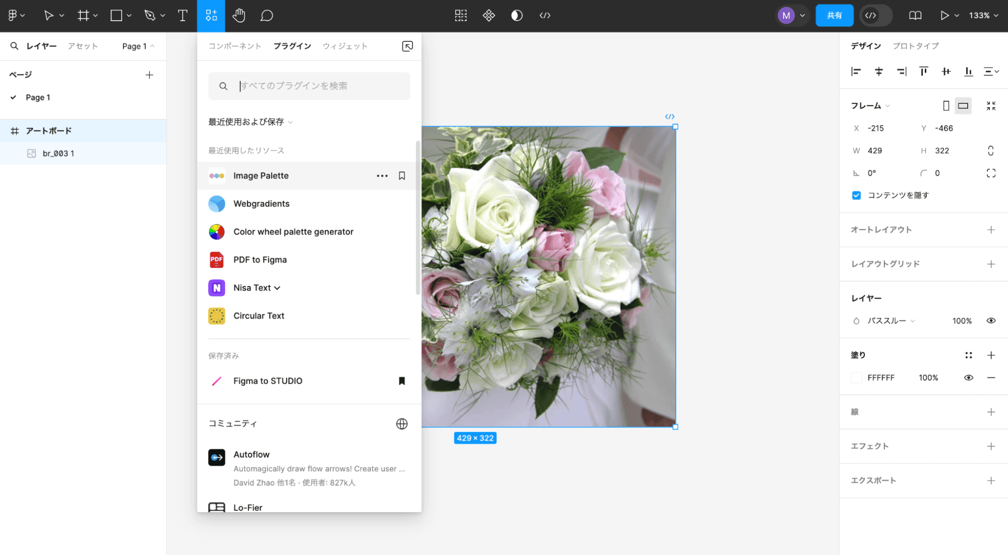 そこでおすすめなのが、Figmaのプラグイン「Image Palette」です。
